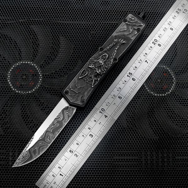 3 New Automatic Quick Open Hunting Knives Damascus Pattern Black